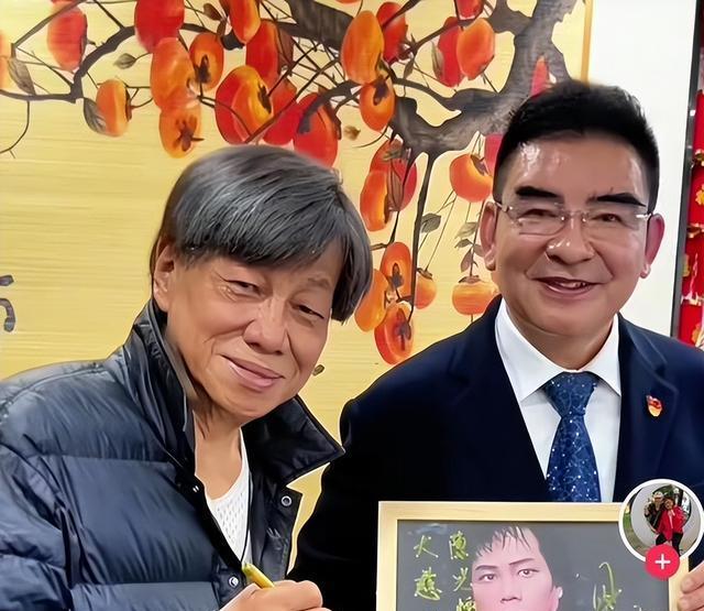 77岁的梁小龙身着黑色外套,颈间系着蓝色围巾,满头华发梳理得整齐利落。面对认出他的粉丝,他大方配合合影,对着镜头竖起大拇指,露出标志性的爽朗笑容。