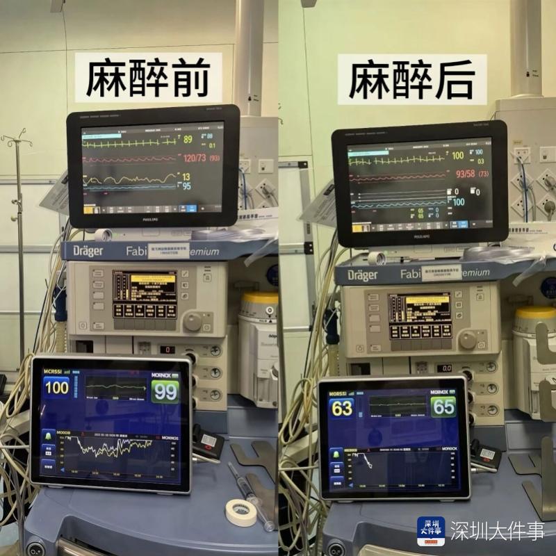 手术中,创伤骨科主任刘雷团队以微创技术为核心,优化手术流程,力求创伤小、时间短、出血少;麻醉科负责人彭粤团队则针对老人超高龄特点,制定了精细化、微创化麻醉方案——优先选择对循环干扰小的区域阻滞+镇静镇痛方案,精准调控药物剂量与速度,同时实施有创动脉压、血氧饱和度、体温、心电等多维度监护,全程维持血流动力学稳定。